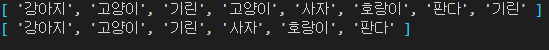 var arrValues = ["강아지", "고양이", "기린", "고양이", "사자", "호랑이", "판다", "기린"];